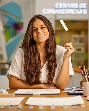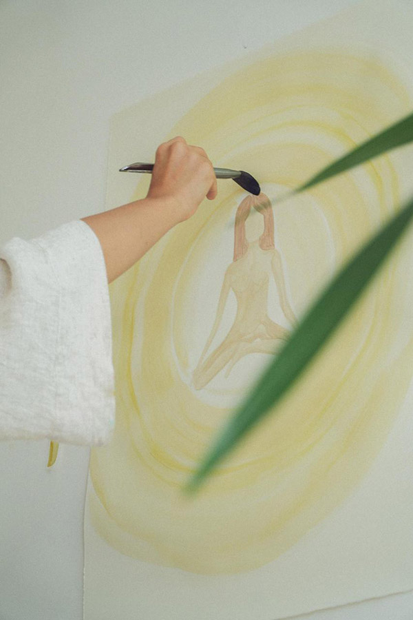 Ju Varella é licenciada em Publicidade pela ESPM e estudou Belas-Artes na University of the Arts London (UAL). Trabalhou como print designer para a OYSHO (grupo Inditex, Zara) antes de iniciar uma jornada pessoal de cura da ansiedade e da depressão através da pintura e da meditação.