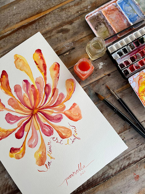 Esta experiência transformadora levou-a a criar o método Watercolor & Creative Unblocking, que acolhe as emoções como fonte de poder criativo e as direciona para a expressão artística. Nos últimos seis anos, a Ju partilhou o seu método com mais de três mil alunos em todo o mundo, dando aulas em Barcelona, São Paulo e, atualmente, em Paris.